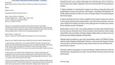 Laporan Hasil Pemeriksaan (LHP) Badan Pemeriksa Keuangan (BPK) RI Perwakilan Sumatera Utara kembali jadi sorotan tajam. Seorang warga Kabupaten Samosir, Daniel Jefferson Sidabutar, resmi melaporkan dugaan pemalsuan dokumen negara ke Direktorat Reserse Kriminal Khusus (Ditreskrimsus) Polda Sumut. Ia menuding adanya praktik manipulasi dalam LHP Tahun 2023 yang diterbitkan BPK Sumut.